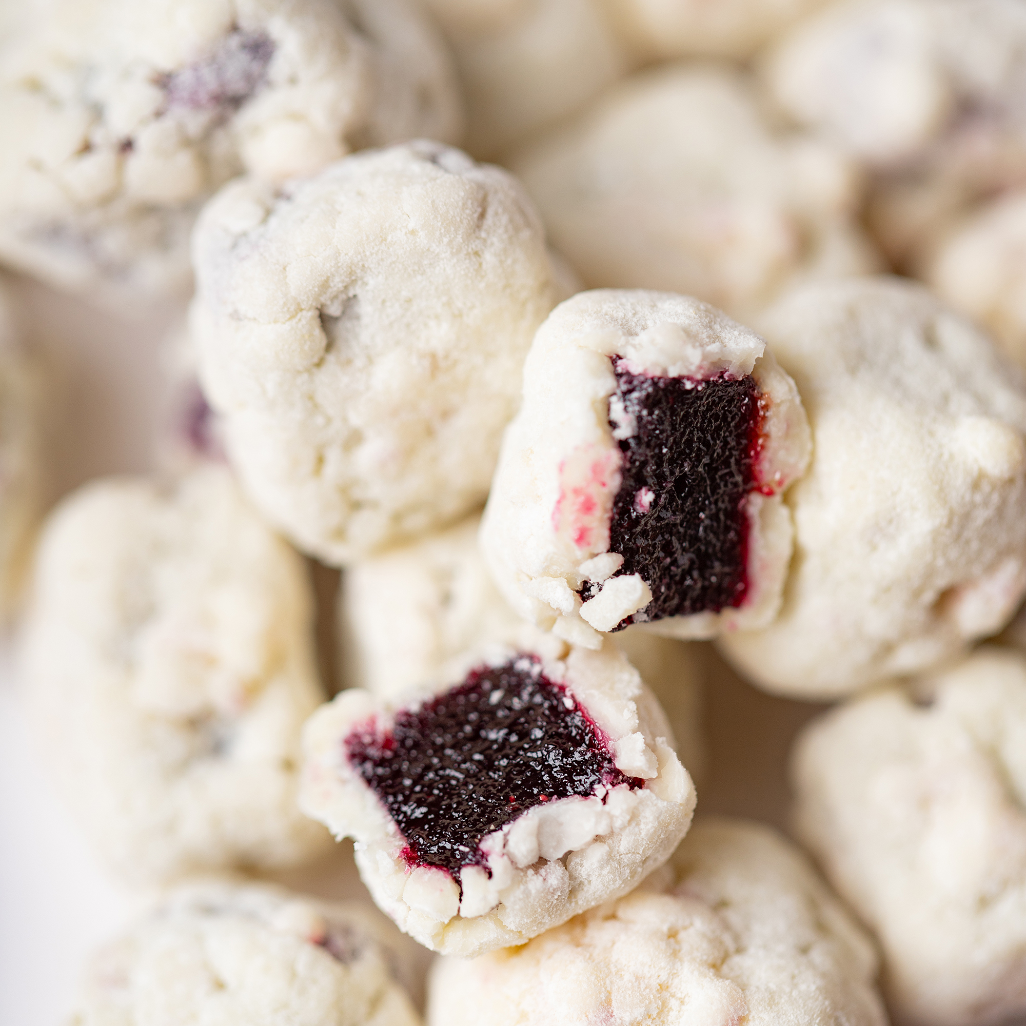 INGREDIENTES: AZUCRE, MANTEIGA DE CACAO, LEITE ENTEIRA EN PO, EMULXENTE (LECITINA DE XIRASOL) EXTRACTO NATURAL DE VAINILLA, (LÁCTEOS), ARÁNDANO ECOLÓXICO, SACAROSA, MAZÁ, TREHALOSA, GLUCOSA, AZUCRE INVERTIDO, PECTINA, PURÉ DE FRAMBOESA, IOGUR EN PO, ÁCIDO CÍTRICO.